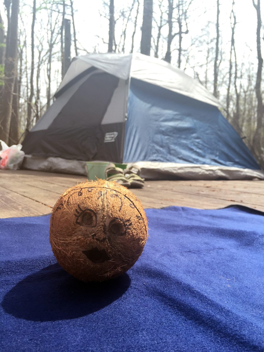 IMG_3008 Published April 6, 2015 at 2448 × 3264 in Adventure Report: Kayak Camping on the Roanoke ← Previous Next → Coconut Stacey enjoying the sunshine in front of the tent.