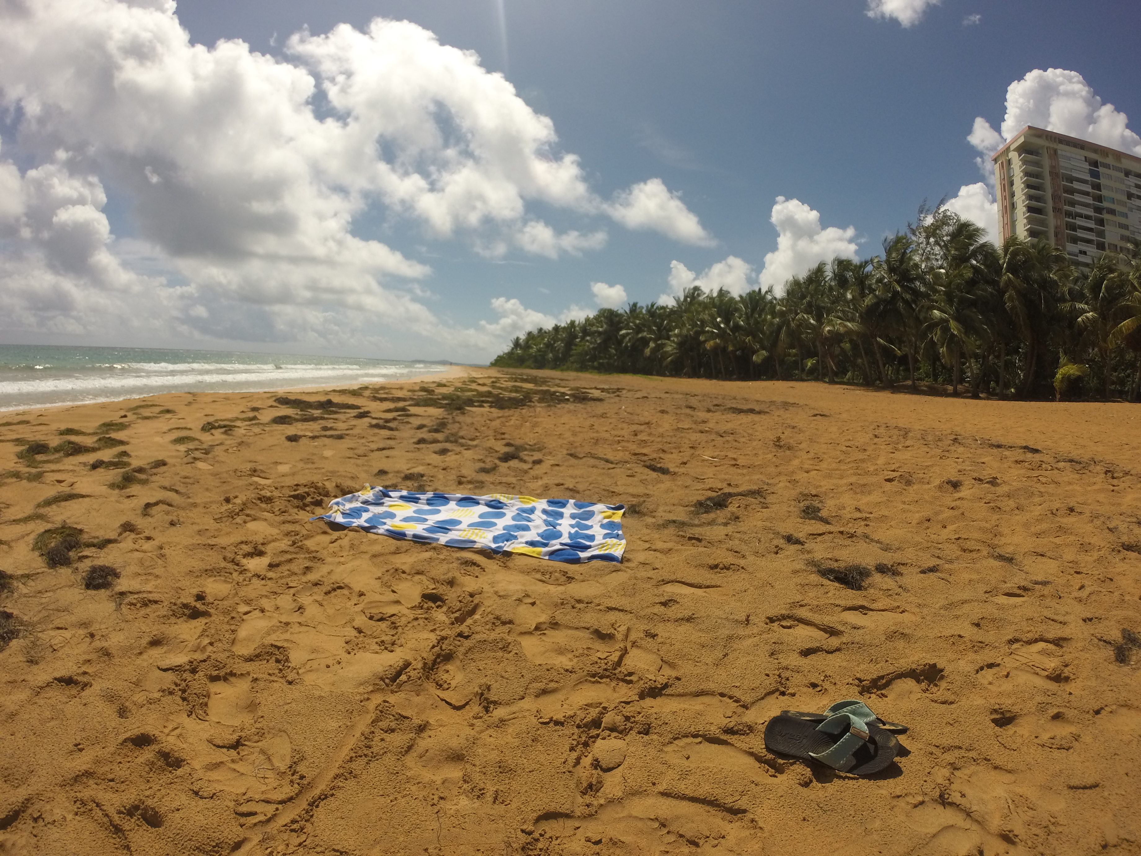 Eventually the families started filling in around me, but for about an hour I had the beach completely to myself. The water was always warm and clear. Paul and I enjoyed a few mornings relaxing in the sun and sand. There were coconut palms up and down the shoreline, and birds would chase the crabs along the waters edge. I really enjoyed using my GoPro camera in the water and was able to get some cool photos.