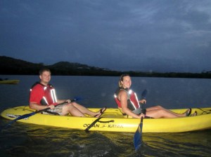 Now the trip back through the canal and marina to the launching spot was a bit of a disaster. The combination of pitch-black lighting, a narrow crowded space, and dozens of people with little to no kayaking experience did not work well. Paul and I didn’t have too many issues, but it was definitely frustrating trying to figure out where to go. Although it was hilarious to hear other people crashing and getting lost in the dark. But everyone in the group made it back safely (I think…) and it was a successful tour. Kayaking Puerto Rico also took a few photos of everyone to share on Facebook.