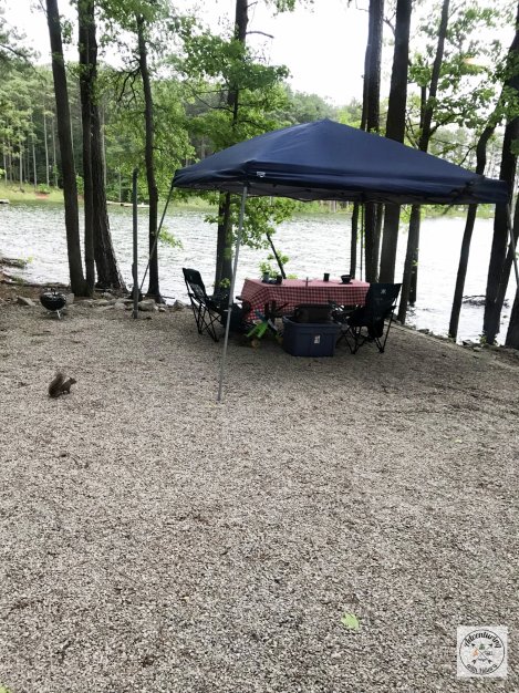 For our third trip, I decided to try out a different park. I found a lake-front campsite in the Kimball Point area of Kerr Lake State Park and booked it. The weather leading up to the weekend was bad. We came close to cancelling our trip several times. If there had been a way for me to cancel online, I would have. But procrastination and dreaded boredom at home got the better of us and we decided to tough it out in a weekend full of rainy, stormy weather.