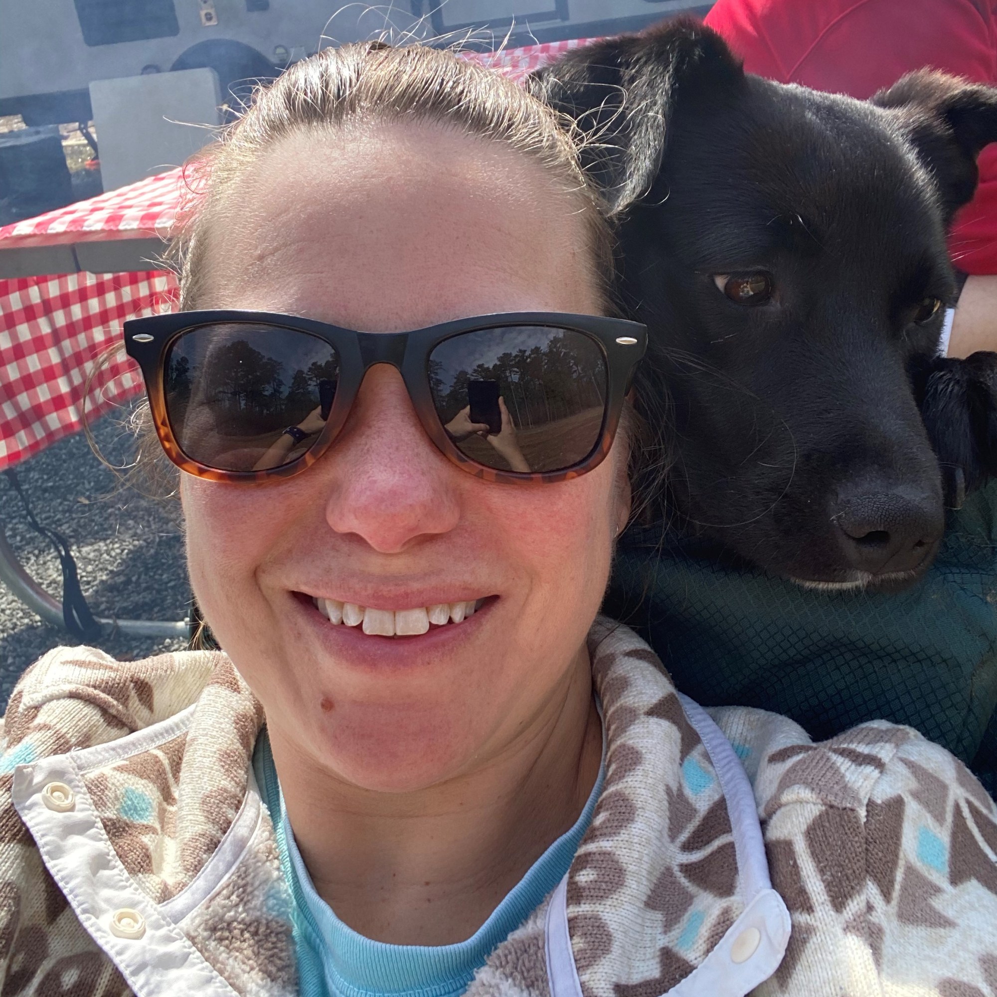 Our first camping trip of 2021 took us to site 17 at the new Moccasin Branch campground. We had adopted our COVID dog Sunny just two weeks earlier and had no idea how she’d do camping with us the first time. All we knew is that she had thrown up all over my backseat after just 15 minutes on the road. I backed the camper into a giant mud puddle from what had felt like a straight month of rain. Paul tried to clean up the dog barf as I worked with the hookups. Nat immediately started playing in the mud pit. Sunny was extremely anxious and too afraid to walk anywhere. Things were off to a great start!
