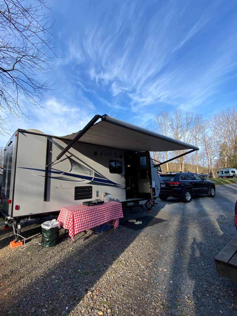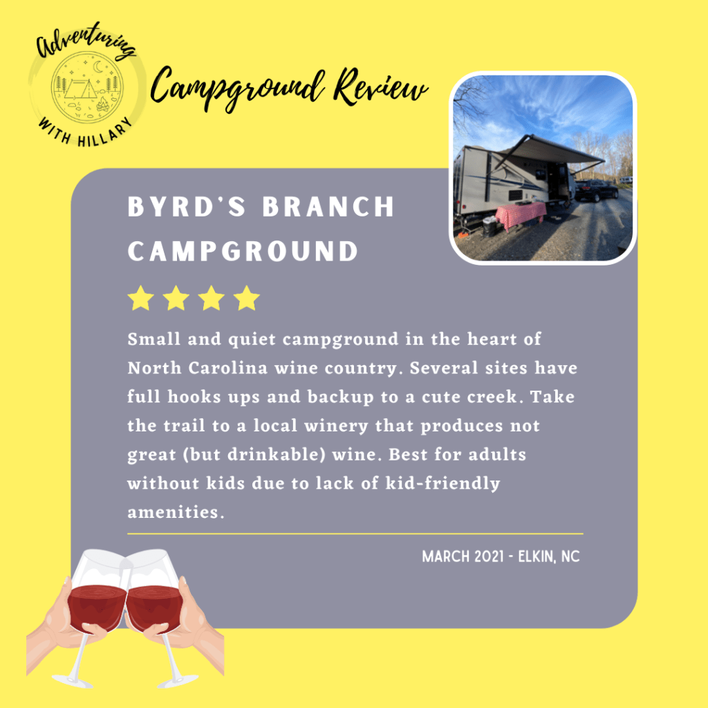 What do you do when you love camping but your best friends don’t? You buy a camper and convince them to go “glamping” for your birthday! Cathie and Jen both love to hike and be outside, but neither of them are big on sleeping outside and roughing it. Cathie in particular won’t even entertain the idea of a night in a tent. Luckily I have a hotel on wheels, so I was able to convince them to come with me on a trip to Byrd’s Branch Campground in the foothills of North Carolina one weekend in March.